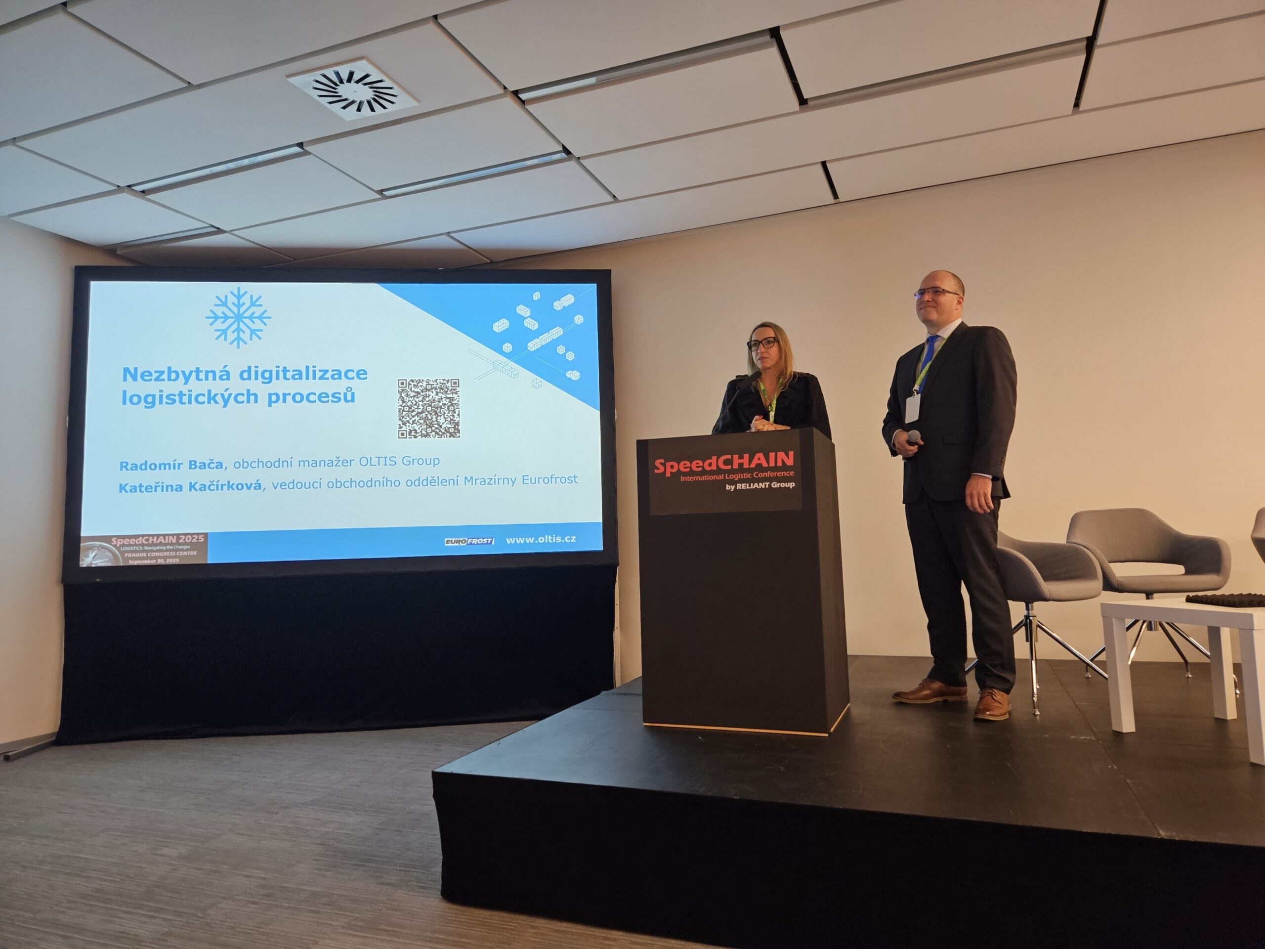 Группа компаний OLTIS, один из традиционных участников конференции, не осталась в стороне и в этом году – с собственной экспозицией и профессиональным докладом. Менеджер по продажам Радомир Бача совместно с Катержиной Качирковой из EUROFROST и FROSTTRANS выступили с интересной лекцией на тему «Необходимость цифровизации логистических процессов», которая вызвала большой интерес. Они подробно остановились на конкретных примерах из практики, демонстрирующих, как цифровизация помогает оптимизировать операции, повысить прозрачность и эффективнее реагировать на вызовы современного рынка.